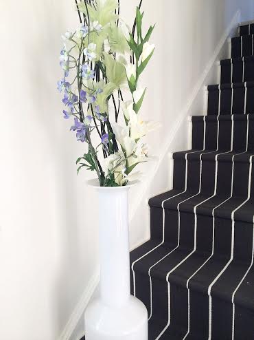 [ .:. three .:. ] Area Rugs. Rugs are a really fun way to add color and texture to a room. I purchased the gray 5’x7′ one from HomeGoods for $100. The smaller 2’x3′ black and white rug is the “Broadway” style from Fab Habitat and it really ties in the black and white from my entryway to my stairs.