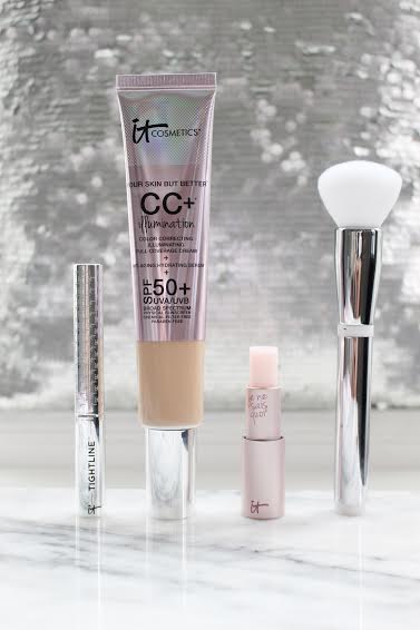 I am SO excited to be a part of the latest IT Cosmetics & QVC Today’s Special Value launch. It contains 4 of my favorite things, that I do not go a day without using! Full coverage CC + Cream, 3-in-1 primer/mascara & eyeliner, moisturizing lip balm, and one of IT’s super soft, high quality foundation brushes.