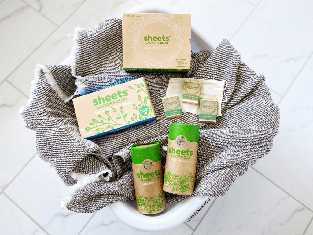 When Covid hit and cleaning supplies (laundry detergent included) were sparse and hard to find, I searched google for online options and came across Sheets Laundry Club. It’s a laundry subscription service aimed at reducing the use of plastic by offering single-use dissolvable detergent “sheets”. It’s cost effective, eco-friendly and contains better, safer ingredients than traditional detergent.