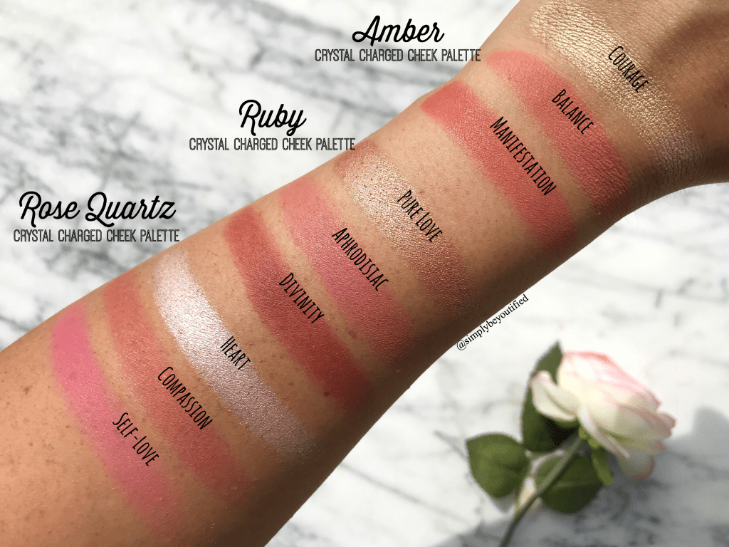 The pigments are long wearing and the formula is very blendable and this will last on the cheeks for hours on end even with a cloth mask rubbing on your skin. In comparison to the other two Crystal Charged Cheek Palettes, I prefer this highlighter the most. I love the golden champagne undertone and how smooth it applies and blends into the cheeks. I’ve also used this highlighter as an eyeshadow for a really quick and easy eye look. While I LOVE the blush shade Balance from the Amber palette, I still love the shade Compassion from the Rose Quartz palette the most. They’re very similar in tone and both described as peachy pink blushes, Compassion pulls a little bit more neutral/nude while Balance has a more noticeable pink tone. I also think this palette would suit any skin tone as the shades are so easy to apply and can definitely easily be built up to your desired intensity.