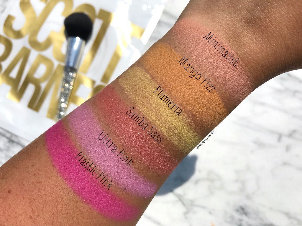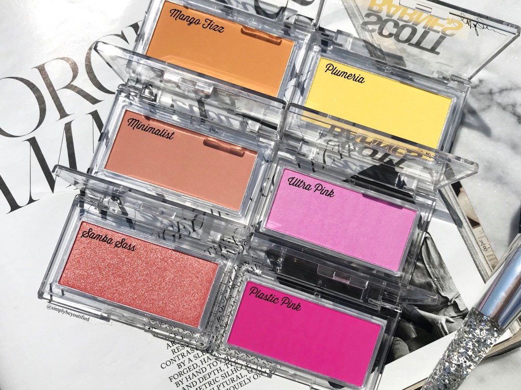 Upon reviving these I was immediately drawn to the shade Minimalist. I am all about neutral, subdued makeup.. always have been, always will be. Neutral will NEVER go out of style. I also was intrigued by the shade Mango Fizz. The orange hue adds such a pretty flush of color on the cheeks and screams summer to me. Ultra Pink kind of looks intimidating in the pan, it’s a cool-toned bubble gum pink, but blends out beautifully on the cheeks. Samba Sass leans coral/pink and is shimmery. Plastic Pink is 1000% out of my comfort zone and way too pigmented and bold for my taste, but I like that he included something bright, it really stands out amongst of sea of neutral pinks. The shade Plumeria, although yellow and probably not the average persons first choice in blush colors, layers so well with ANY of the other blush shades to change the overall tone. It’s the coolest thing.